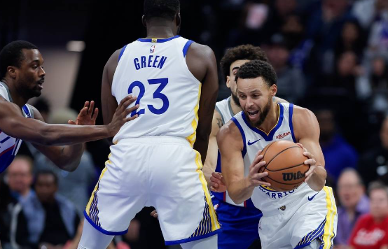 勇士隊首發:安德魯-維金斯、斯蒂芬-庫里、克萊-湯普森、德雷蒙德-格林、凱文-盧尼